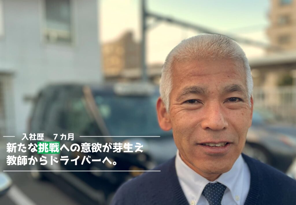 教員時代とは全く異なる職種に戸惑いつつも、お客様を安全に目的地へお送りし、感謝の言葉をいただくたびに、大きなやりがいを感じている。